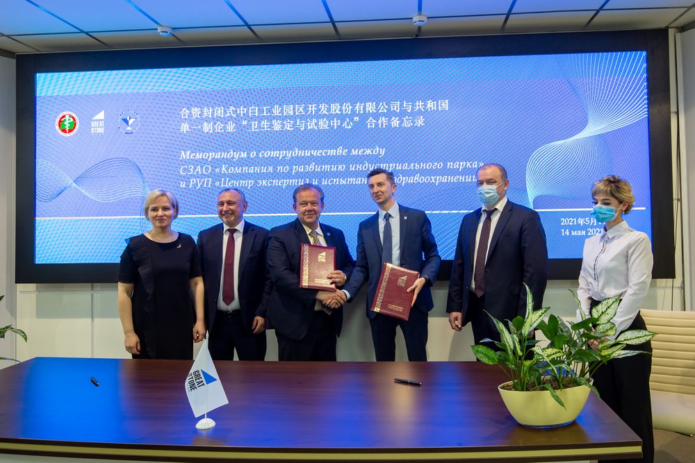5月14日下午,在白俄羅斯共和國衛(wèi)生部副部長鮑里斯·安德羅修克和中白工業(yè)園區(qū)管委會主任雅羅申科的見證下,園區(qū)開發(fā)公司第一副總經(jīng)理卡羅杰耶夫和白俄羅斯共和國衛(wèi)生鑒定與試驗(yàn)中心經(jīng)理德米特里·格林科共同簽署了合作備忘錄。