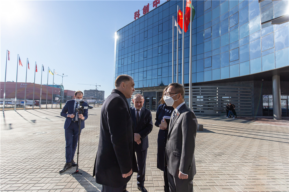 3月17日,白俄羅斯共和國安全會議國務(wù)秘書沃爾福維奇·亞歷山大考察中白工業(yè)園,白俄羅斯共和國國家海關(guān)委員會主席奧爾洛夫斯基·弗拉基米爾、園區(qū)管委會主任亞羅申科、開發(fā)公司總經(jīng)理李鐘漢等領(lǐng)導(dǎo)陪同考察。