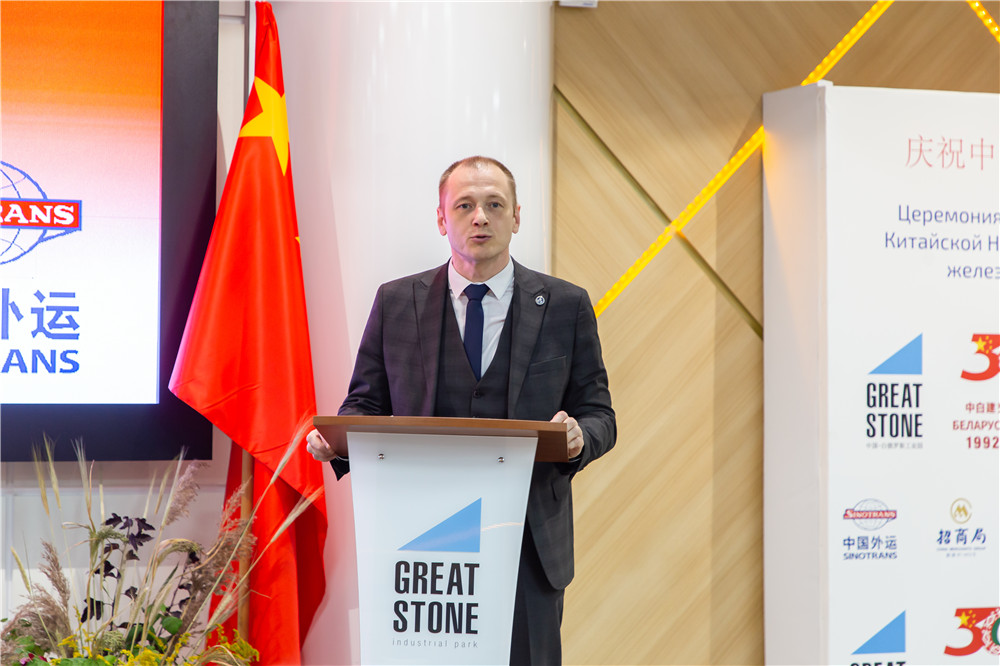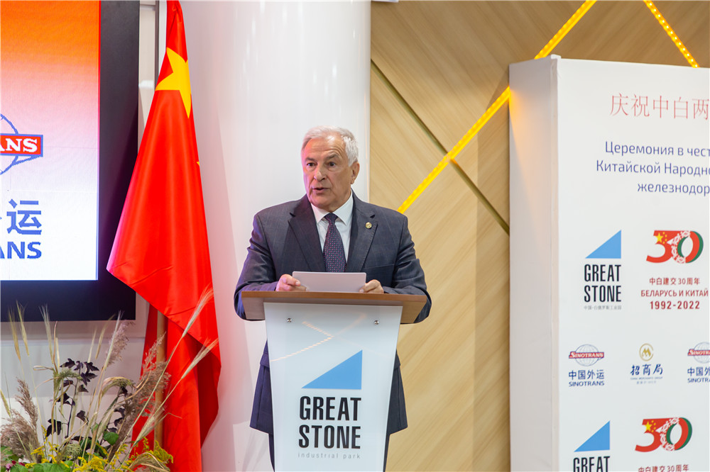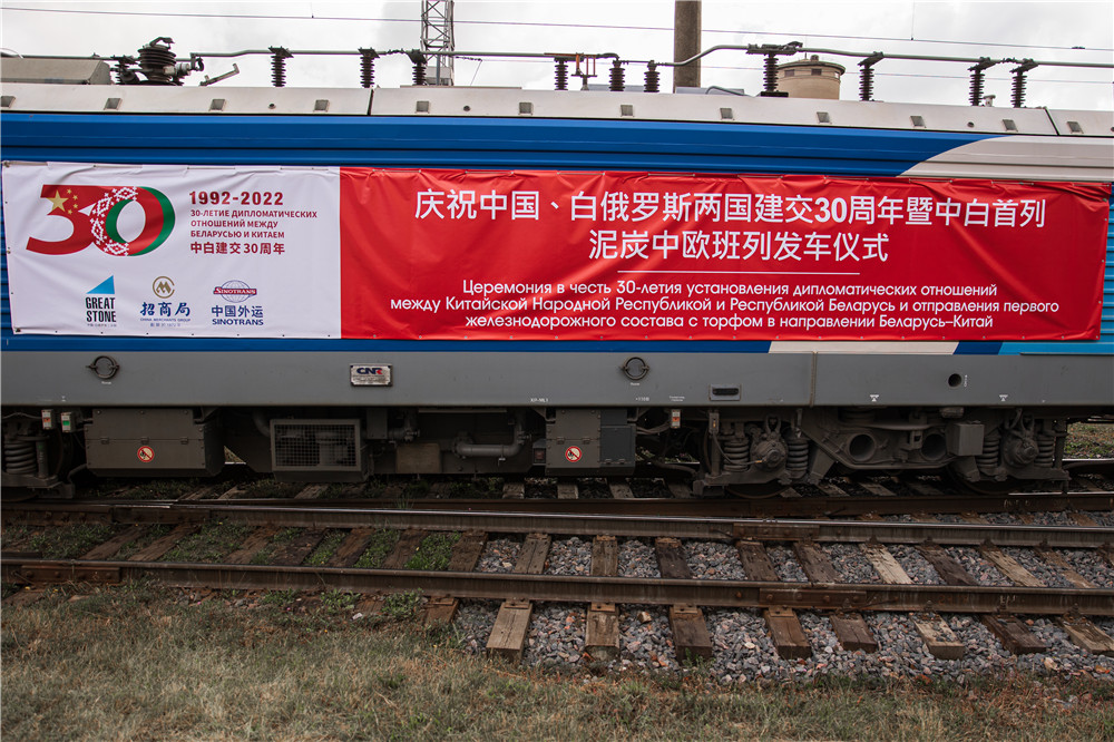 9月22日,慶祝中國、白俄羅斯兩國建交30周年暨中白首列泥炭班列發(fā)車儀式在中白工業(yè)園舉行。白俄羅斯能源部副部長吉尼斯·莫羅茲,白俄羅斯鐵路總公司明斯克局第一副局長舍甫琴科,白俄羅斯國家燃料和氣化生產(chǎn)協(xié)會總經(jīng)理庫什納連科,中白工業(yè)園管委會副主任塔巴紐霍夫,中白工業(yè)園區(qū)開發(fā)股份有限公司總經(jīng)理李鐘漢,招商局中白商貿(mào)物流股份有限公司總經(jīng)理張震勇出席發(fā)車儀式,并共同按下發(fā)車按鈕。