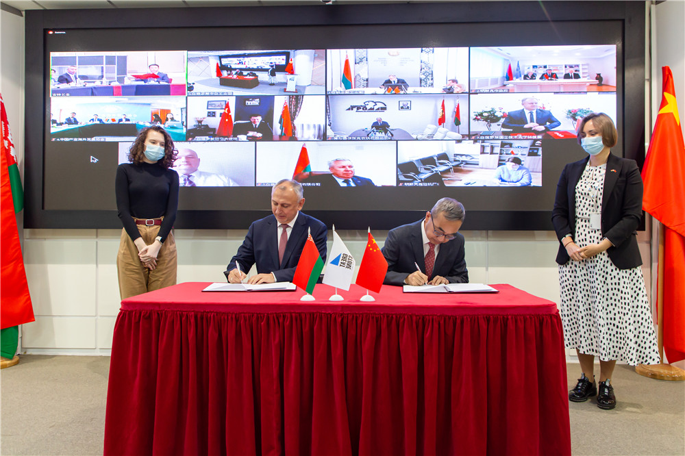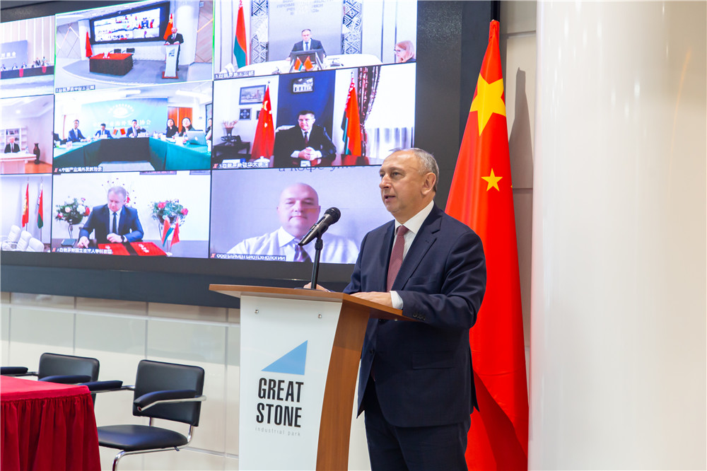 9月27日,中白經(jīng)貿(mào)項(xiàng)目視頻對接會(huì)順利舉行,吉林省委常委、長春市委書記張志軍,白俄羅斯駐華大使尤里·先科,明斯克市市長弗拉基爾·古哈列夫、白俄羅斯工業(yè)部副部長德米特里·哈列東奇克、中國產(chǎn)業(yè)海外發(fā)展協(xié)會(huì)會(huì)長和振偉、白俄羅斯中白工業(yè)園區(qū)管委會(huì)主任亞羅申科等領(lǐng)導(dǎo)先后致辭,開發(fā)公司總經(jīng)理李鐘漢出席活動(dòng)。會(huì)上,中白工業(yè)園區(qū)管委會(huì)、中白工業(yè)園區(qū)開發(fā)股份有限公司與長春市經(jīng)開區(qū)簽訂了建立經(jīng)貿(mào)合作關(guān)系備忘錄。