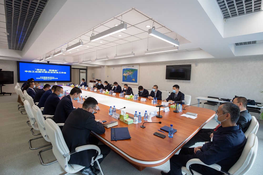 10月12日,第四季度中資企業(yè)交流會(huì)在開(kāi)發(fā)公司一號(hào)會(huì)議室舉行,本次會(huì)議圍繞“保安全,迎盛會(huì)”中資企業(yè)安全生產(chǎn)主題展開(kāi)。開(kāi)發(fā)公司副總經(jīng)理任飛主持會(huì)議,中白警務(wù)合作中心組長(zhǎng)孫慶祥以及十余家園區(qū)中資企業(yè)代表參加會(huì)議。