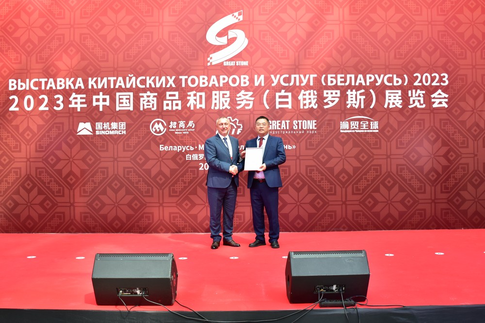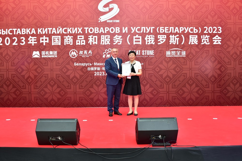 6月29日,第二屆中國(guó)商品和服務(wù)(白俄羅斯)展覽會(huì)在園區(qū)順利開(kāi)幕,在期間舉辦的中白經(jīng)貿(mào)與投資合作論壇上,海虹白俄醫(yī)療科技有限公司和浙江天磨礦業(yè)科技有限公司注冊(cè)成為園區(qū)居民企業(yè),中白工業(yè)園區(qū)管委會(huì)主任亞羅申科分別為海虹實(shí)業(yè)公司董事長(zhǎng)李志芳、浙江天磨公司董事長(zhǎng)范亞強(qiáng)頒發(fā)入園證書(shū)。