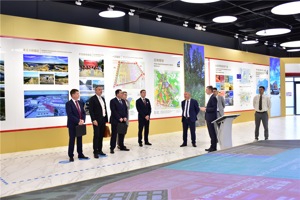 在園區(qū)規(guī)劃館,亞羅申科向先科大使一行介紹了園區(qū)的發(fā)展建設(shè)情況、居民企業(yè)發(fā)展情況,并詳細(xì)介紹了園區(qū)下一階段的的發(fā)展目標(biāo)和方向,先科大使對園區(qū)近幾年的發(fā)展表示肯定,并表示將繼續(xù)進(jìn)一步通過駐華使館加強(qiáng)吸引中國企業(yè)赴園區(qū)考察投資。
