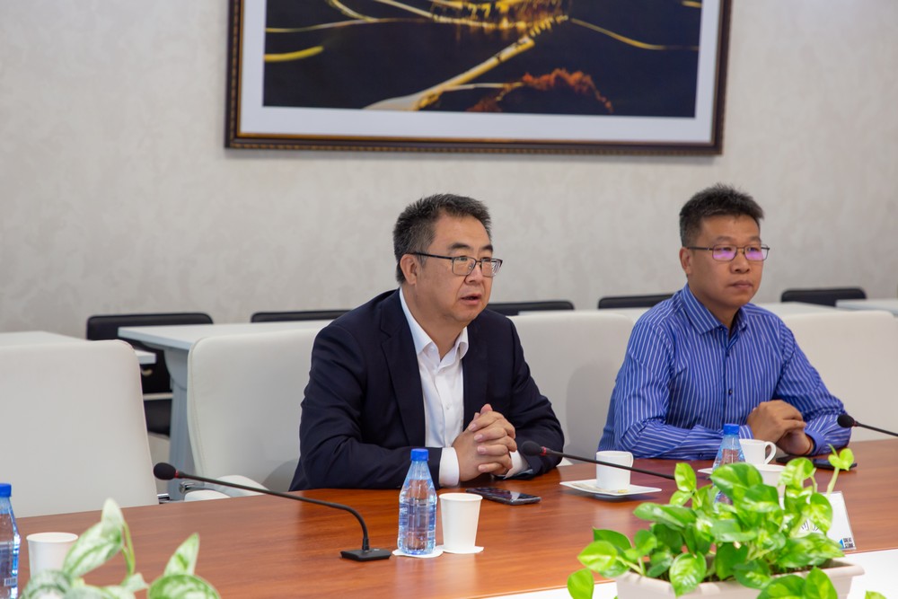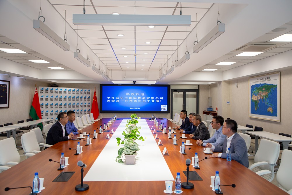 2023年7月24日下午,中外運化工國際物流有限公司總經理劉波一行考察中白工業(yè)園,與中白工業(yè)園區(qū)開發(fā)公司總經理李鐘漢舉行座談。