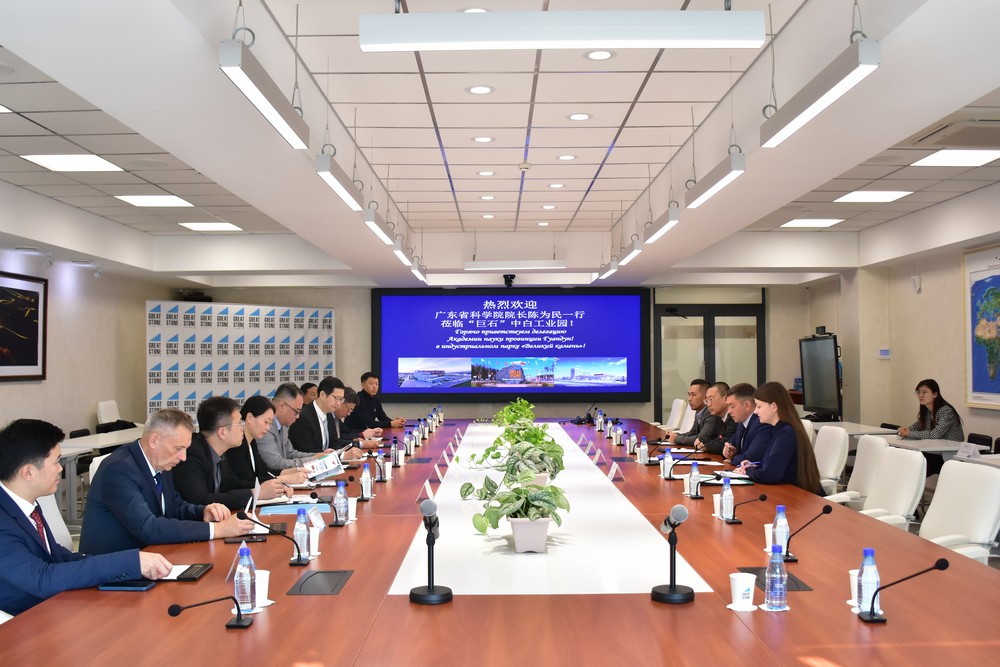 2023年9月19日上午,廣東省科學(xué)院院長陳為民一行考察中白工業(yè)園。園區(qū)管委會(huì)副主任亞季莫夫、開發(fā)公司副總經(jīng)理任飛、中白產(chǎn)業(yè)技術(shù)聯(lián)合創(chuàng)新中心副總經(jīng)理卡爾納邱夫陪同考察。