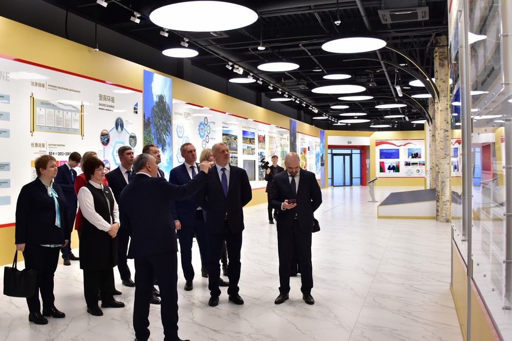 切梅托夫一行參觀了園區(qū)規(guī)劃展示中心,亞羅申科主任向來賓介紹了園區(qū)的建設(shè)發(fā)展歷史,介紹了中白工業(yè)園管理結(jié)構(gòu)、發(fā)展規(guī)劃、招商引資情況及居民企業(yè)的相關(guān)情況。