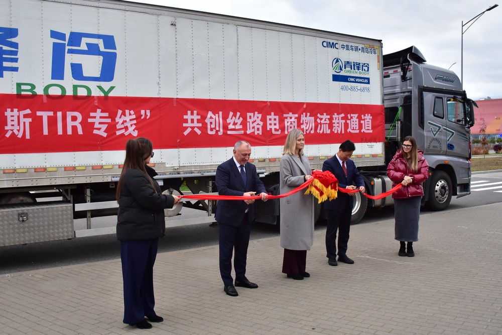 孟慶斌還參加了白俄羅斯產(chǎn)品運送到青島的集裝箱卡車的儀式。