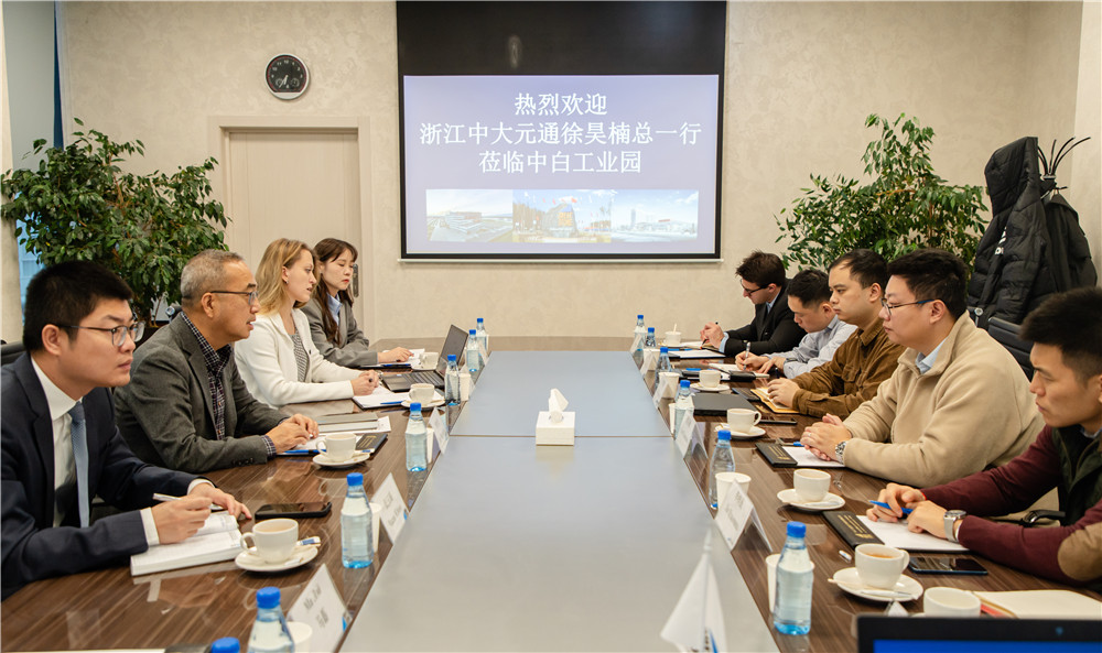 12月4日,浙江中大元通國際貿易有限公司常務副總徐昊楠考察園區(qū),與園區(qū)開發(fā)公司總經理李鐘漢舉行會談。
