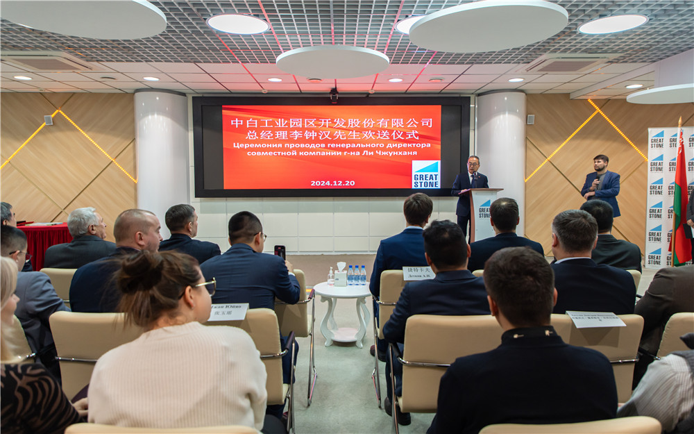 2024年12月20日,中白工業(yè)園舉行園區(qū)開發(fā)公司總經理李鐘漢歡送儀式,園區(qū)管委會第一副主任亞基莫夫向即將離任的李鐘漢總經理頒發(fā)榮譽紀念章,園區(qū)管委會副主任塔巴紐霍夫、副主任日加洛、園區(qū)開發(fā)公司第一副總經理卡羅杰耶夫、副總經理副總經理任飛、副總經理杰特卡夫等代表領導出席本次活動。