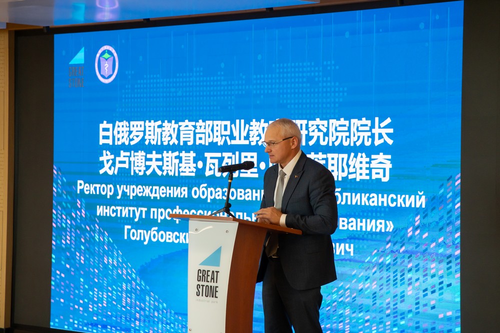 中白工業(yè)園管委會副主任塔巴紐霍夫、中國教育部職業(yè)教育發(fā)展中心主任林宇、白俄羅斯教育部職業(yè)教育研究院院長戈盧博夫斯基、園區(qū)開發(fā)公司副總經(jīng)理杰特卡夫、園區(qū)“衛(wèi)生鑒定與試驗中心”副總經(jīng)理茲洛特妮科娃、濰坊護理職業(yè)學(xué)院副院長王學(xué)功及代表團成員、園區(qū)企業(yè)代表出席活動。儀式由濰坊護理職業(yè)學(xué)院健康管理學(xué)院院長徐歆主持。