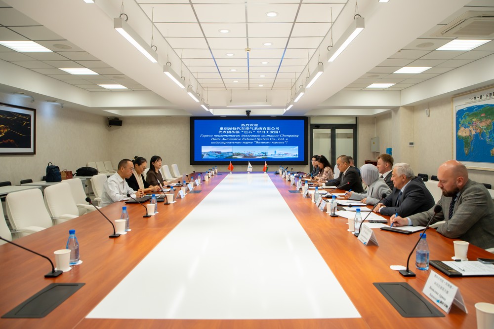 2025年8月26日,重慶海特汽車排氣系統(tǒng)有限公司董事長(zhǎng)秦瑞平率代表團(tuán)一行訪問(wèn)中白工業(yè)園。園區(qū)管委會(huì)第一副主任列別江采夫、副主任塔巴紐霍夫,開(kāi)發(fā)公司總經(jīng)理蔡志勇、第一副總經(jīng)理卡羅杰耶夫等參加接訪活動(dòng)。