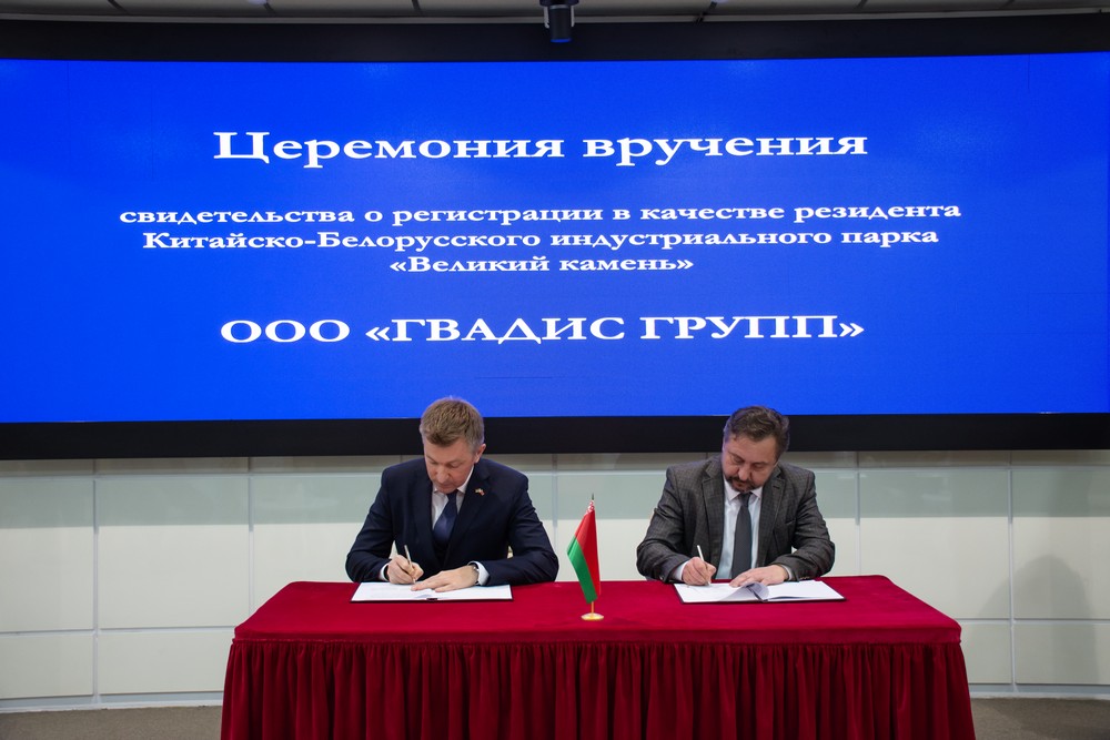 2025年10月31日,中白工業(yè)園為白俄羅斯企業(yè)GVADIS集團(tuán)有限公司舉行了居民企業(yè)入園儀式。園區(qū)管委會(huì)第一副主任列別江采夫出席活動(dòng),并向公司代表正式頒發(fā)了居民企業(yè)證書(shū)。