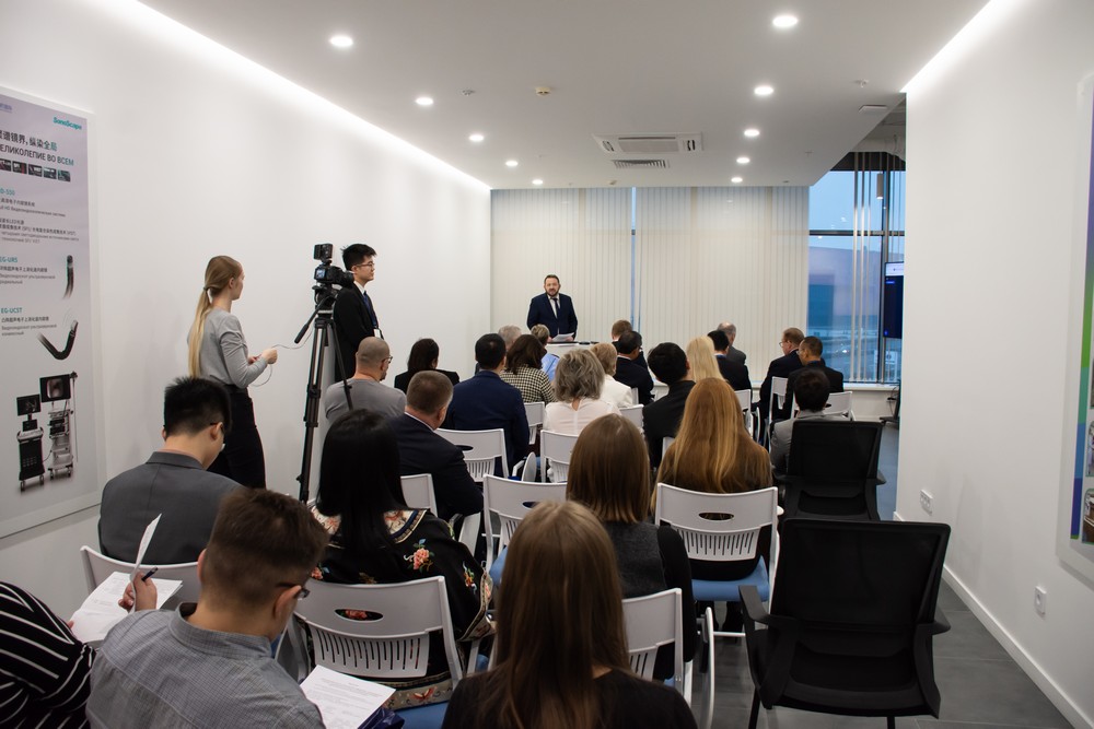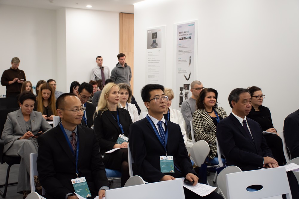 白俄羅斯衛(wèi)生保健評審中心主任格林科、中白工業(yè)園管委會第一副主任列別江采夫、中國國際醫(yī)藥衛(wèi)生有限公司白俄羅斯代表處首席代表劉影濤及浙江中醫(yī)藥大學附屬第三醫(yī)院黨委書記馬慧娟分別致歡迎辭。來自白俄羅斯與中國的專家學者、臨床醫(yī)師等30余人現(xiàn)場參會,另有約50名代表在線參會。