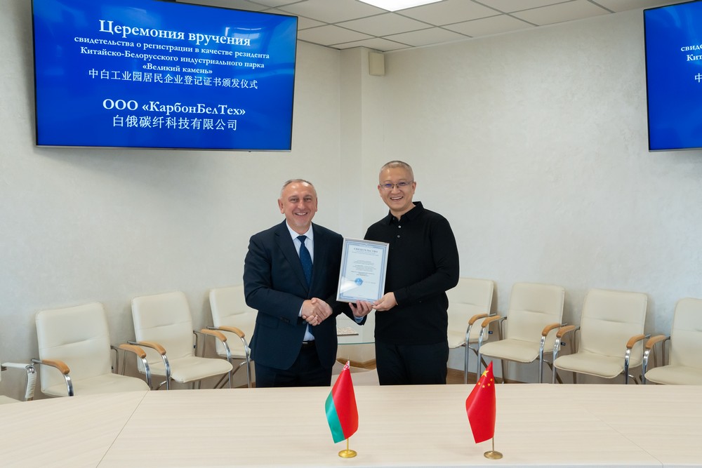 10月2日,白俄碳纖科技有限公司入園儀式在中白工業(yè)園舉行,園區(qū)管委會主任亞羅申科向該企業(yè)總經(jīng)理張艷峰頒發(fā)入園證書,園區(qū)管委會第一副主任亞季莫夫、副主任塔巴紐霍...202310-02