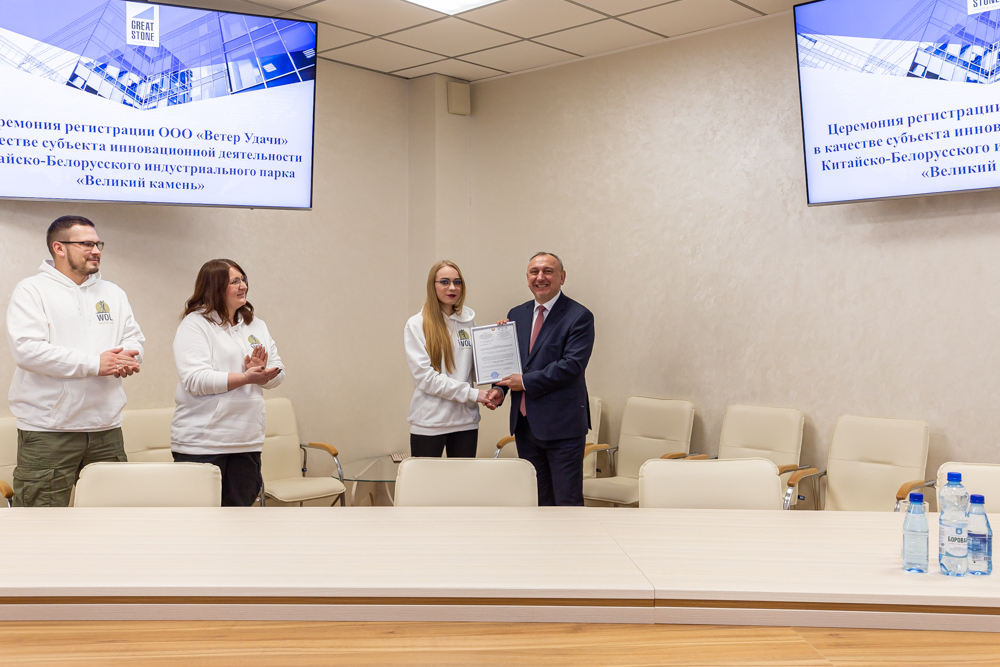 12月14日,中白工業(yè)園園區(qū)管委會主任亞羅申科為白俄羅斯Wind Of Luck公司頒發(fā)初創(chuàng)企業(yè)入園證書。管委會第一副主任雅克莫夫、副主任塔巴紐霍夫、開發(fā)公司副總經(jīng)理維杰...202112-14
