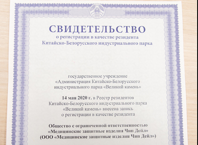 2020年5月14日下午,中白工業(yè)園園區(qū)管委會(huì)向奇普代爾醫(yī)療防護(hù)用品制造有限公司負(fù)責(zé)人頒發(fā)了居民企業(yè)證書,該公司成為中白工業(yè)園第62家居民企業(yè)。據(jù)悉,奇普代爾醫(yī)療防...202005-14