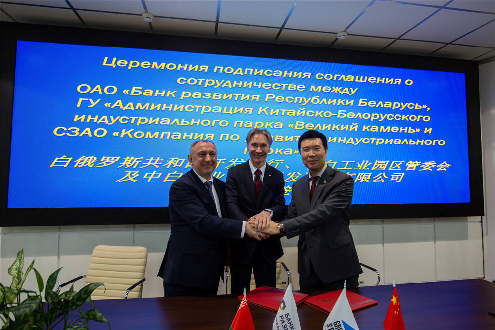 2020年2月25日下午,中白工業(yè)園管委會主任亞羅申科、開發(fā)公司總經(jīng)理嚴剛與白俄羅斯共和國開發(fā)銀行(以下簡稱“白開行”)董事長日什科維奇在辦公樓簽署三方合作協(xié)議,根...202002-25