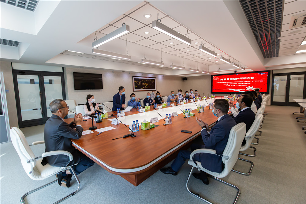 7月4日,開發(fā)公司舉行全體干部大會,共同迎接新任副總經(jīng)理衛(wèi)建華的加入。李鐘漢總經(jīng)理親自主持會議并宣讀了有關(guān)衛(wèi)建華職務(wù)任命的通知。公司第一副總經(jīng)理卡羅捷耶夫、副...202207-04