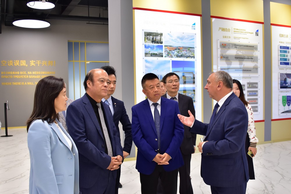 6月27日,中國(guó)機(jī)械工業(yè)聯(lián)合會(huì)副會(huì)長(zhǎng)李奇、中國(guó)產(chǎn)業(yè)海外發(fā)展協(xié)會(huì)會(huì)長(zhǎng)和振偉率團(tuán)考察中白工業(yè)園,園區(qū)管委會(huì)主任亞羅申科陪同考察。在園區(qū)規(guī)劃館,亞羅申科主任向李奇副...202306-27