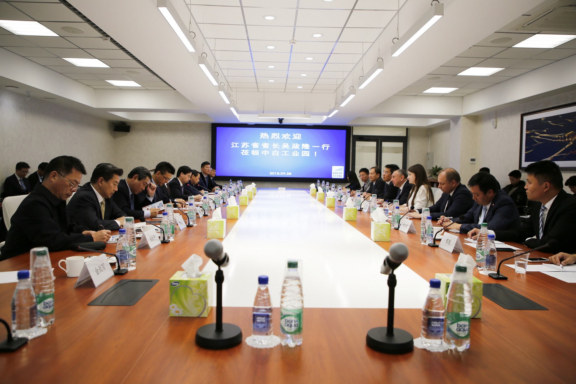 2018年9月28日下午,江蘇省長(zhǎng)吳政隆一行考察中白工業(yè)園。中白工業(yè)園區(qū)管委會(huì)主任亞羅申科,園區(qū)開發(fā)股份有限公司總經(jīng)理李海欣陪同考察。