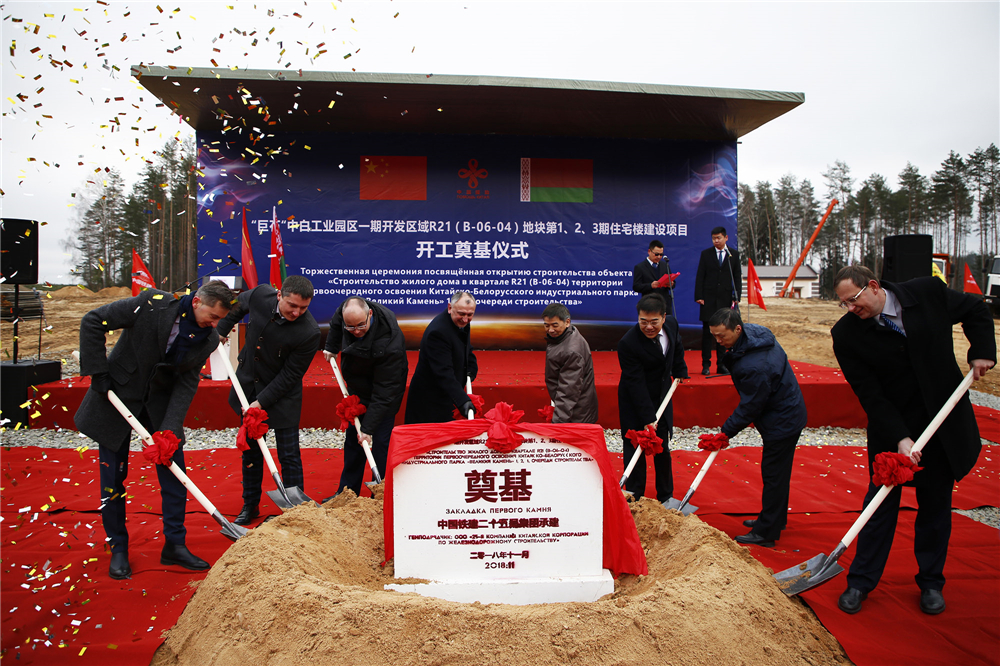 2018年11月21日上午,中國援助白俄羅斯中白工業(yè)園成套住宅樓項目(下稱住宅樓項目)在園區(qū)舉行開工奠基儀式,白俄羅斯共和國經(jīng)濟部副部長馬圖謝維奇,中白工業(yè)園區(qū)管委會主任亞羅申科,中國駐白俄羅斯大使館經(jīng)參處一等秘書陳有進,斯莫列維奇區(qū)副區(qū)長巴拉莫那夫,園區(qū)開發(fā)公司總經(jīng)理李海欣等領(lǐng)導出席本次儀式,并為項目揮鏟奠基。