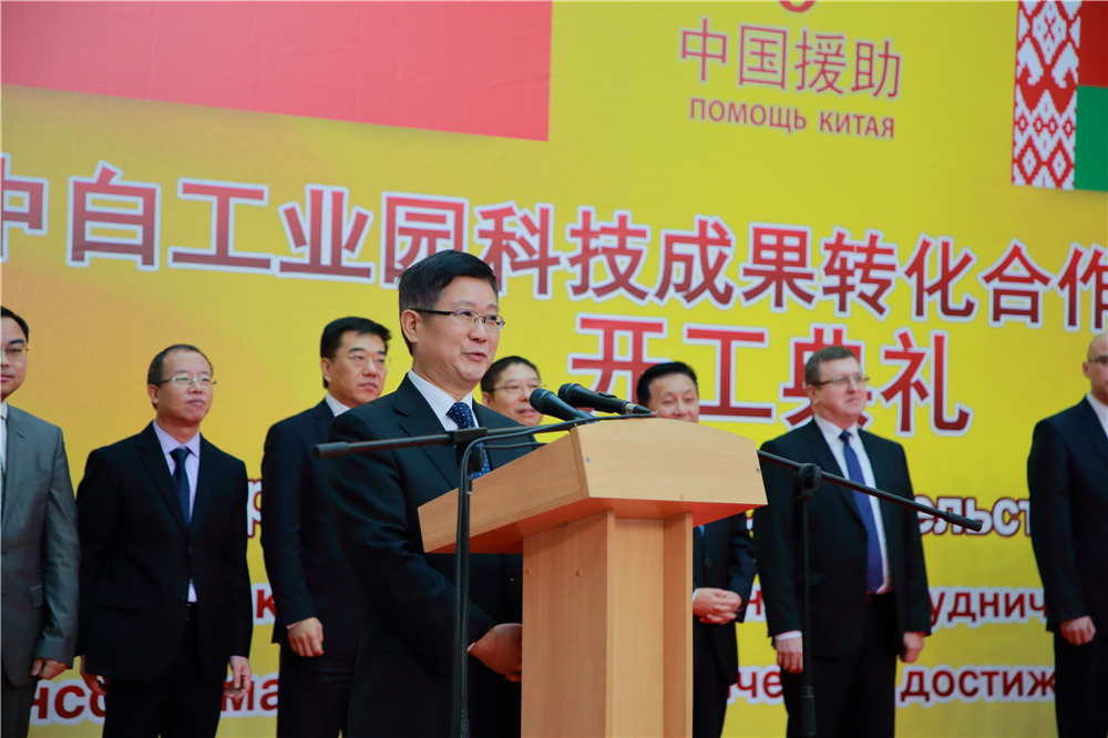 崔啟明大使向科技成果轉(zhuǎn)化中心的開(kāi)工表示祝賀,向白俄羅斯社會(huì)各界對(duì)中白工業(yè)園的關(guān)心和支持表示感謝。他表示,中白工業(yè)園是“一帶一路”上的明珠和重點(diǎn)建設(shè)工程,在中白兩國(guó)領(lǐng)導(dǎo)人的戰(zhàn)略引領(lǐng)和直接推動(dòng)下,園區(qū)建設(shè)不斷取得積極成果。今天開(kāi)工的科技成果轉(zhuǎn)化中心將為園區(qū)入園企業(yè)創(chuàng)造更好的工作、生活和居住條件。中方將與白方朋友一道,把園區(qū)建設(shè)成為基礎(chǔ)設(shè)施完備、產(chǎn)業(yè)協(xié)調(diào)發(fā)展、綠色生態(tài)宜居、技術(shù)水平先進(jìn)的國(guó)家化產(chǎn)業(yè)新城。