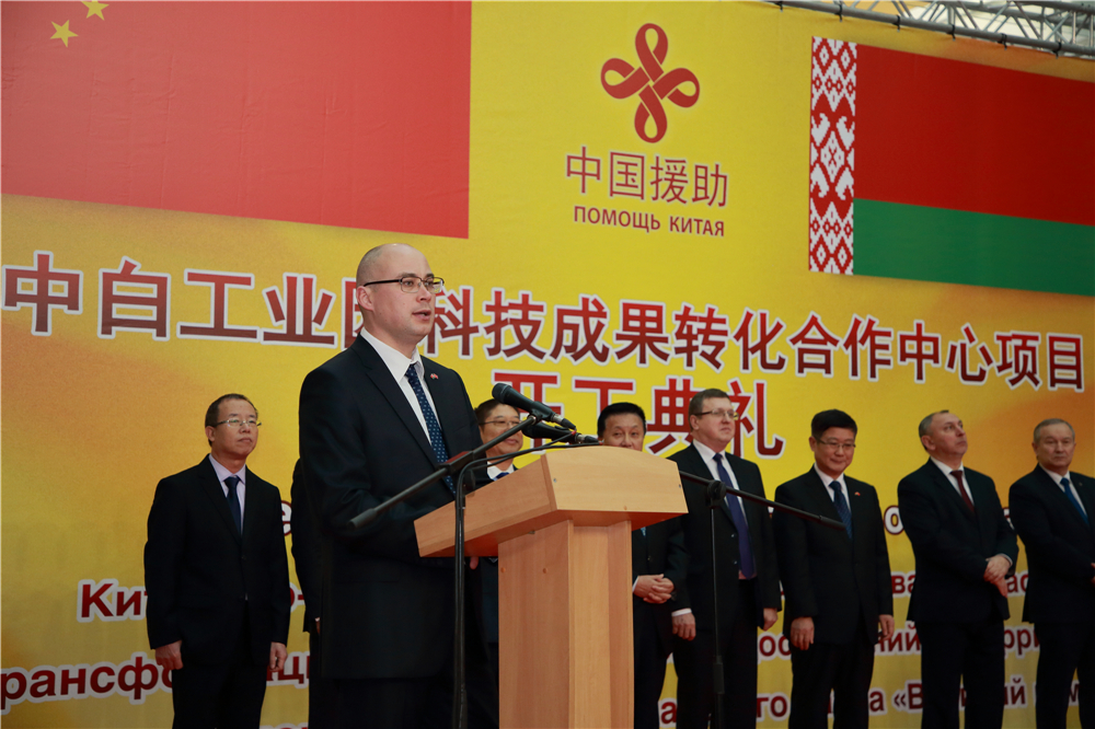 馬圖謝維奇副部長(zhǎng)向出席典禮者致以誠(chéng)摯的問(wèn)候,指出科技成果轉(zhuǎn)化中心的開(kāi)工是白俄羅斯與中國(guó)深化合作、加強(qiáng)友誼的又一次見(jiàn)證。馬圖謝維奇代表白俄羅斯經(jīng)濟(jì)部,對(duì)中方向白俄羅斯提供技術(shù)和經(jīng)濟(jì)援助表示衷心的感謝,并表示,白俄羅斯經(jīng)濟(jì)部愿繼續(xù)盡最大努力發(fā)展與中國(guó)的合作伙伴關(guān)系,加強(qiáng)兩國(guó)人民之間的友誼。