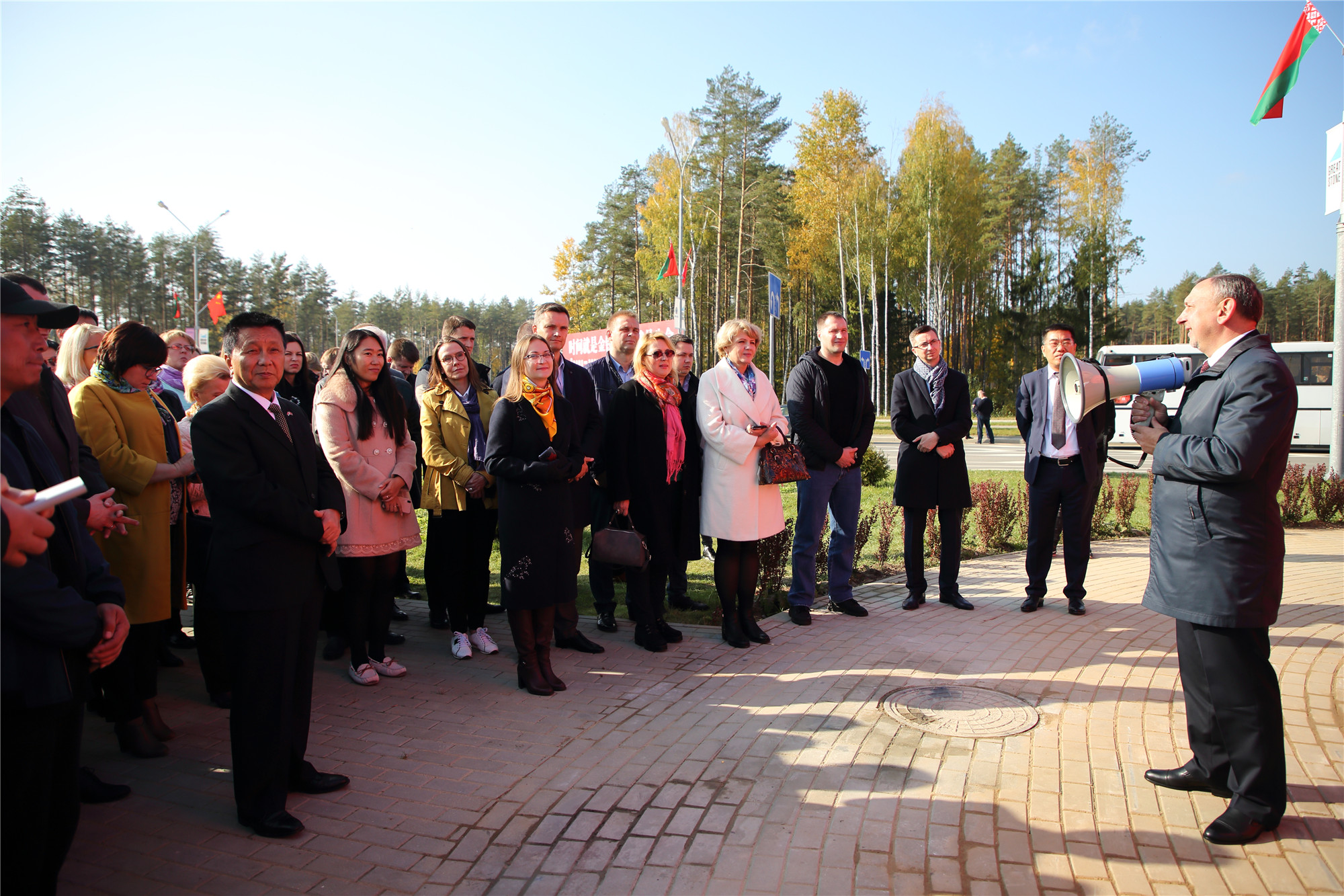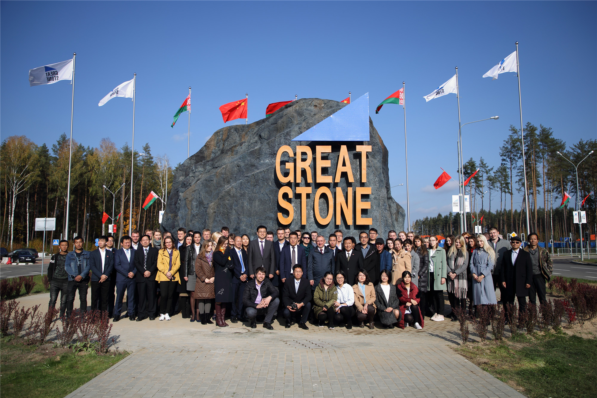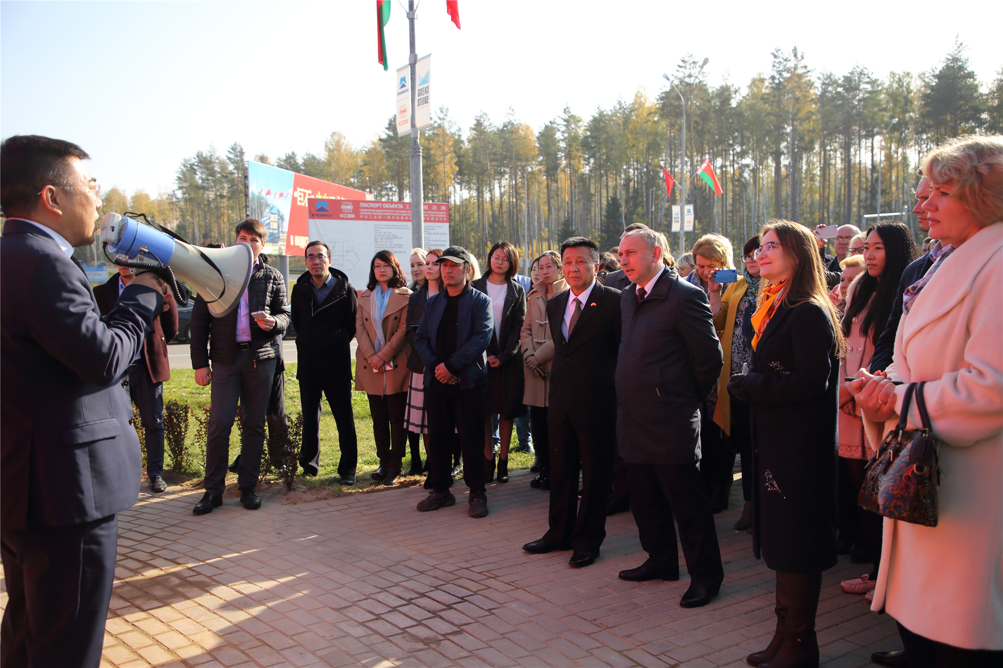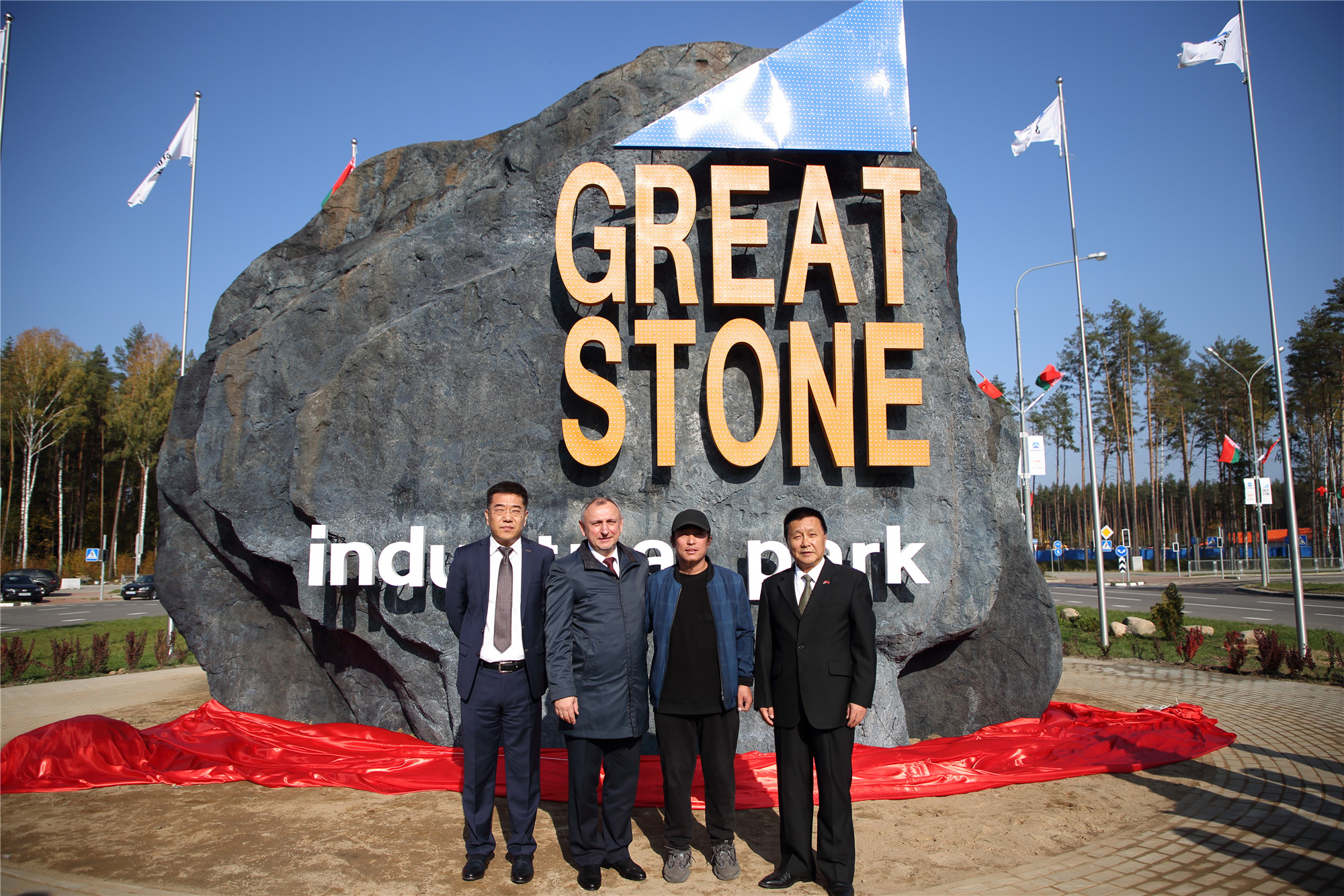 2018年10月11日上午,中白工業(yè)園在園區(qū)1號路主入口處舉行了“巨石”標(biāo)志揭牌儀式。參加此儀式的有中白工業(yè)園區(qū)管委會主任亞羅申科,中白工業(yè)園區(qū)開發(fā)股份有限公司CEO胡政、總經(jīng)理李海欣等。