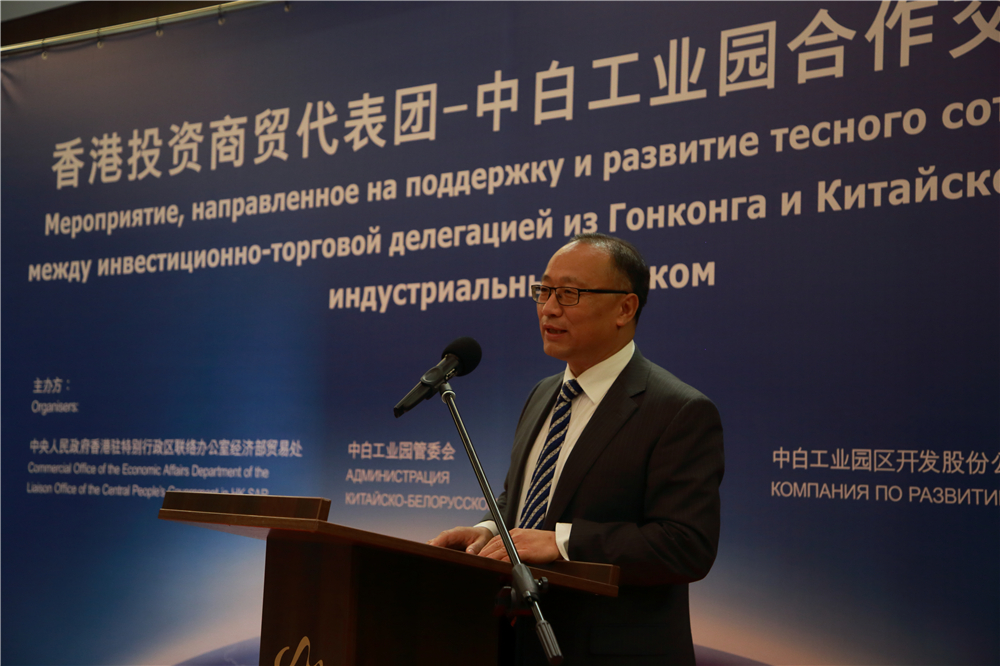 在隨后舉行的香港投資商貿(mào)代表團(tuán)-中白工業(yè)園合作交流酒會(huì)上,劉亞軍發(fā)表致辭,他表示,香港的金融、銀行、證券等服務(wù)型行業(yè)發(fā)展迅速,并參與到全球化的工業(yè)生產(chǎn)中。中白工業(yè)園的產(chǎn)業(yè)定位與香港的行業(yè)發(fā)展具有較強(qiáng)的聯(lián)系,希望通過此次考察和合作交流會(huì)能讓更多的香港企業(yè)了解白俄羅斯和中白工業(yè)園,從而創(chuàng)造更多的合作機(jī)會(huì)和投資。葉澤恩在致辭中表示,此次考察園區(qū),對(duì)中白工業(yè)園有了更加全面的了解,園區(qū)具有良好的平臺(tái)優(yōu)勢(shì)和投資環(huán)境,希望香港企業(yè)能把握機(jī)遇,積極參與園區(qū)投資,服務(wù)于“一帶一路”建設(shè)。