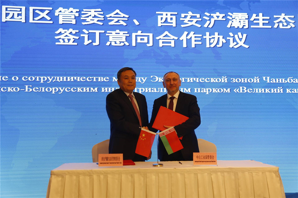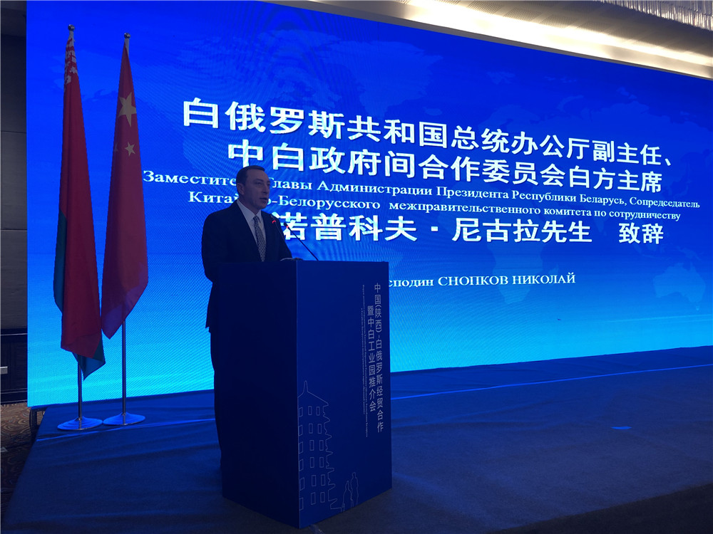 3月27日上午,中國(陜西)-白俄羅斯經(jīng)貿(mào)合作暨中白工業(yè)園推介會系列活動在西安市舉行,活動由陜西省商務(wù)廳、白俄羅斯駐華大使館、中白工業(yè)園區(qū)開發(fā)公司共同主辦,陜西省副省長趙剛,白俄羅斯總統(tǒng)辦公廳副主任、中白政府間合作委員會白方主席斯諾普科夫·尼古拉,白俄羅斯駐華特命全權(quán)大使魯?shù)隆せ餇枺锥砹_斯經(jīng)濟(jì)部副部長別爾米諾娃·伊蓮娜,園區(qū)管委會主任亞羅申科,園區(qū)開發(fā)公司CEO胡政等領(lǐng)導(dǎo)出席了推介會,并共同見證了中白工業(yè)園管委會與浐灞管委會主任簽訂意向合作協(xié)議,會議由陜西省商務(wù)廳廳長趙潤民主持。