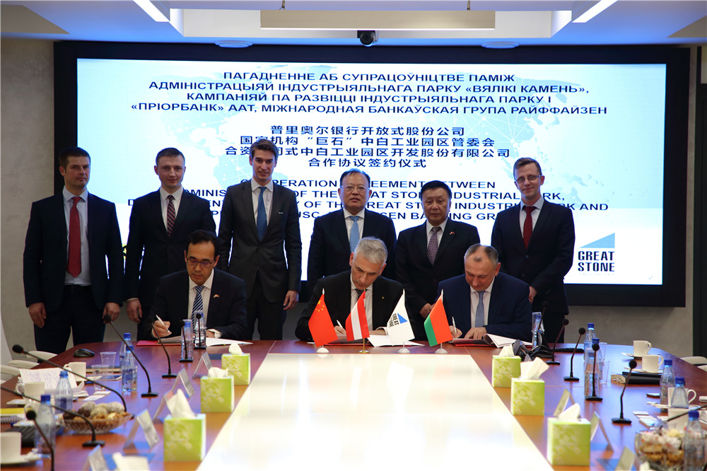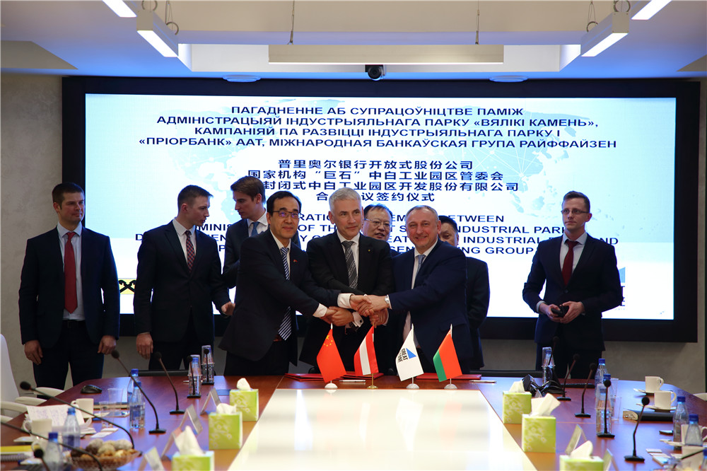 2019年4月4日下午,園區(qū)管委會、開發(fā)公司與白俄羅斯Prior銀行簽署合作備忘錄。管委會主任亞羅申科,開發(fā)公司首席執(zhí)行官胡政,Prior銀行副董事長馬秋季金·瓦季姆,奧地利奧合國際銀行中國業(yè)務部主管周如東等領導出席了簽約儀式。亞羅申科、開發(fā)公司副總經(jīng)理白明,馬秋季金·瓦季姆分別代表三方簽署了合作儀式。