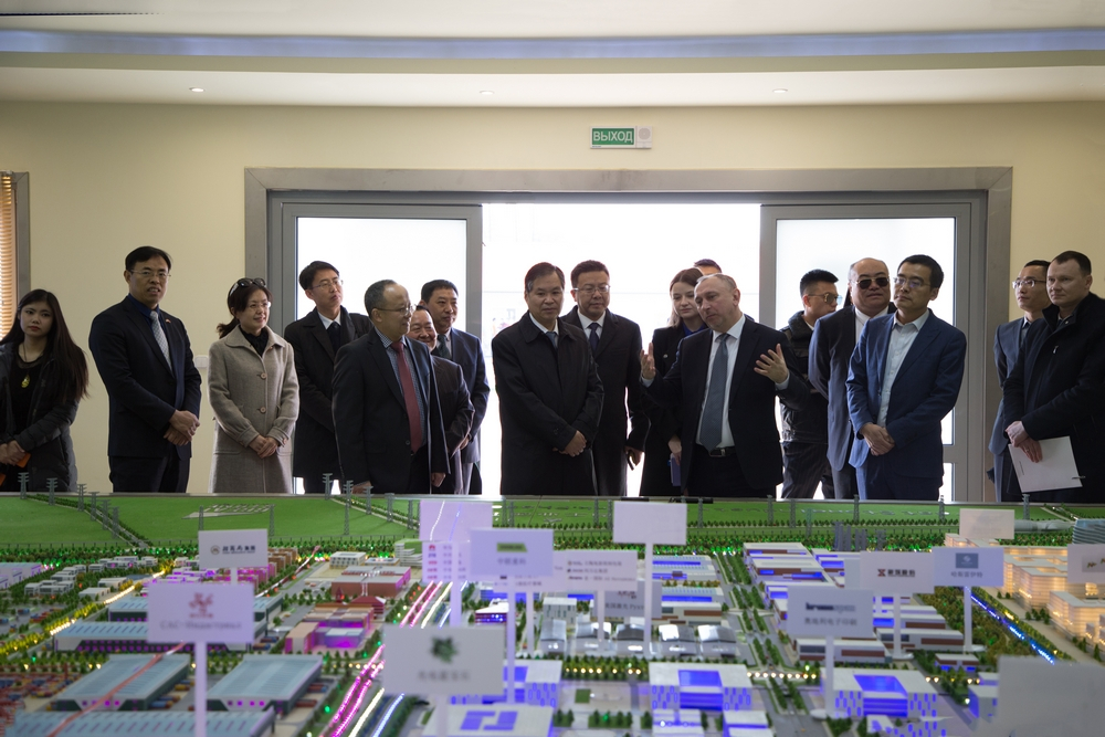 2019年4月5日,陜西省商務(wù)廳廳長(zhǎng)趙潤(rùn)民率陜西省企業(yè)代表團(tuán)考察中白工業(yè)園,園區(qū)管委會(huì)主任亞羅申科、開(kāi)發(fā)公司首席執(zhí)行官胡政陪同考察,并舉行項(xiàng)目座談會(huì)。