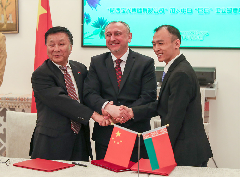 2019年4月24日下午,在白俄羅斯共和國總統(tǒng)盧卡申科到訪北京并參加第二屆“一帶一路”國際合作高峰論壇之際,白俄羅斯共和國駐華大使館舉行中白合作發(fā)展文件簽署儀式。儀式上,兩國政府和企業(yè)代表共簽署了8份合作文件,其中包括3份中白工業(yè)園相關(guān)協(xié)議。