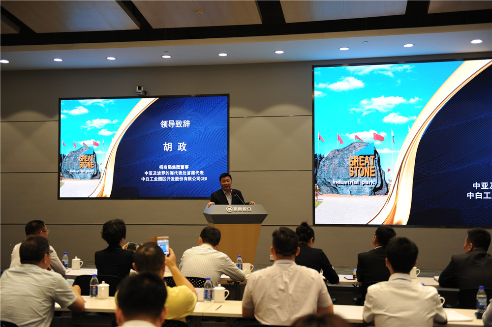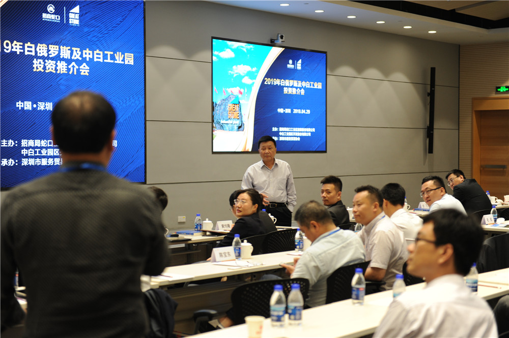 4月29日下午,2019白俄羅斯及中白工業(yè)園投資推介會(huì)(深圳)在深圳蛇口南海意庫順利舉行。中白工業(yè)園區(qū)開發(fā)股份有限公司(以下簡稱“開發(fā)公司”)CEO胡政,國家商務(wù)部歐亞司二處處長張棟,深圳市商務(wù)局副局長周明武,國家開發(fā)銀行明斯克代表處副處長譚瑛出席會(huì)議。招商蛇口財(cái)務(wù)總監(jiān)黃均隆,中白工業(yè)園開發(fā)公司副總經(jīng)理任飛,招商啟航副總經(jīng)理王金晶,中白產(chǎn)業(yè)基金總經(jīng)理?xiàng)詈暌约爸邪坠I(yè)園已入園企業(yè)、意向入園企業(yè)和合作協(xié)會(huì)的代表共一百余人參加會(huì)議。會(huì)議由深圳市服務(wù)貿(mào)易協(xié)會(huì)執(zhí)行會(huì)長謝小彪主持。
