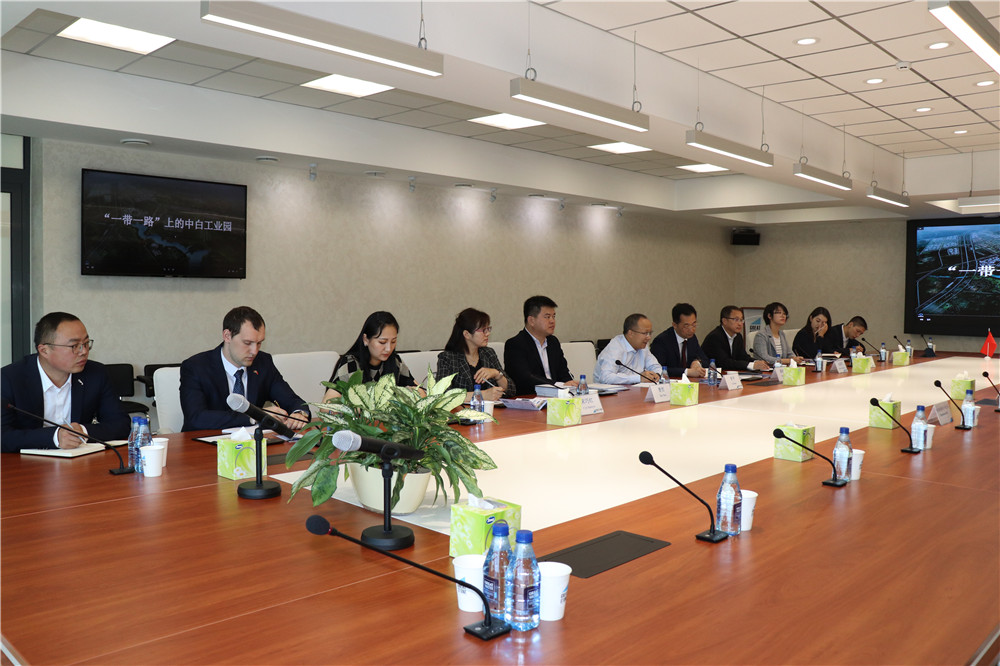2019年6月3日上午,西安國家民用航天產(chǎn)業(yè)基地管委會副主任蔣陽率團考察中白工業(yè)園,園區(qū)管委會主任亞羅申科,開發(fā)公司副總經(jīng)理任飛接待考察。