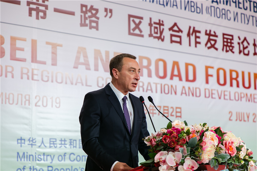 7月2日,由中國商務部和白俄羅斯經(jīng)濟部共同主辦的“一帶一路”區(qū)域合作發(fā)展論壇在中白工業(yè)園隆重開幕。白俄羅斯總統(tǒng)辦公廳副主任斯諾普科夫現(xiàn)場宣讀白俄羅斯總統(tǒng)盧卡申科賀信。全國政協(xié)副主席何維、中國商務部副部長錢克明、白俄羅斯經(jīng)濟部部長克魯托伊、白俄羅斯財政部部長葉爾莫洛維奇等發(fā)表主旨演講。中白工業(yè)園開發(fā)公司CEO胡政受邀出席開幕式并做主旨演講。來自中白兩國以及周邊國家600多名政府、地區(qū)、商業(yè)協(xié)會、金融機構及企業(yè)代表參加了本次論壇活動。