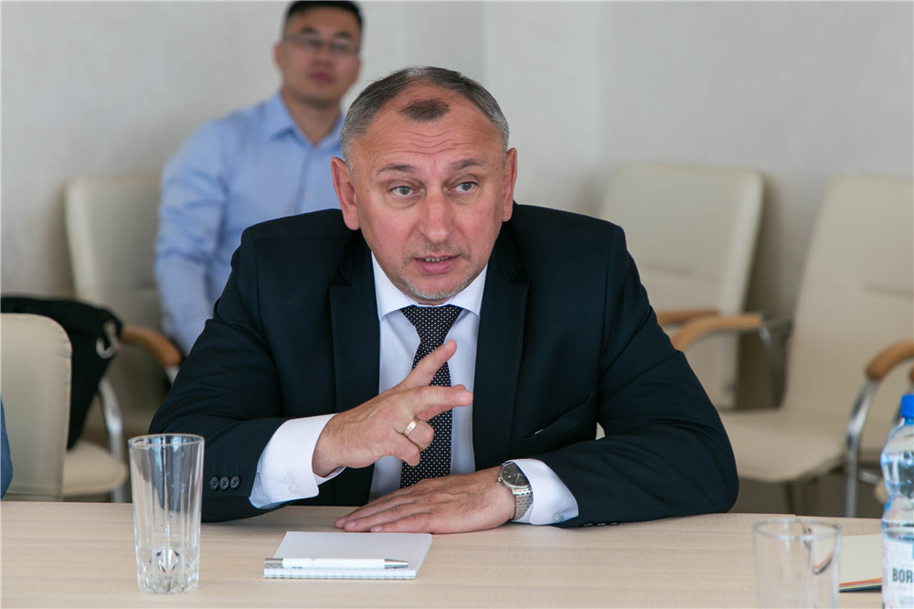 2019年8月16日上午,園區(qū)管委會主任亞羅申科,開發(fā)公司CEO胡政在園區(qū)辦公樓會見白俄羅斯工業(yè)部第一副部長兼白俄羅斯吉利汽車公司(以下簡稱“白俄吉利”)總經(jīng)理斯維德爾斯基,共同探討園區(qū)與白俄吉利合作事宜。