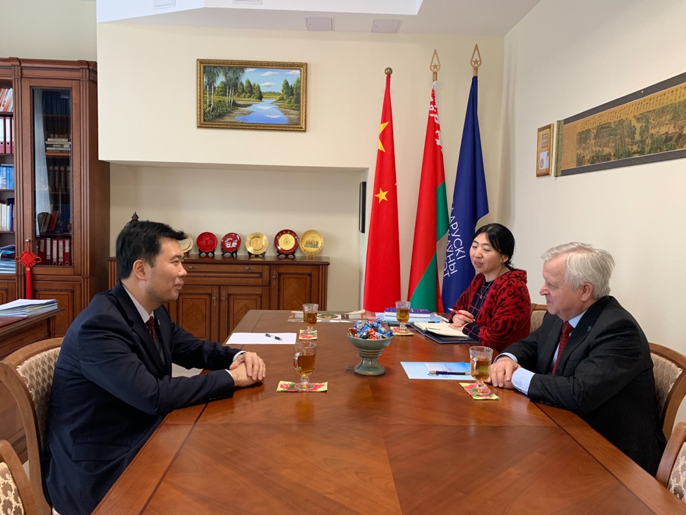 2020年2月13日,中白工業(yè)園區(qū)開發(fā)公司總經(jīng)理嚴(yán)剛在明斯克會(huì)見白俄羅斯國立大學(xué)共和國漢學(xué)孔子學(xué)院院長托吉克,就開展校企合作、慈善公益、漢語培訓(xùn)等工作進(jìn)行深入交流并達(dá)成廣泛共識(shí)。