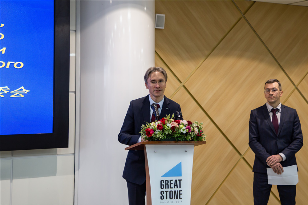 簽約儀式上,亞羅申科、嚴(yán)剛、日什科維奇分別致辭。嚴(yán)剛在致辭中表示,中白工業(yè)園開發(fā)公司與白開行自2016年開展合作以來,在園區(qū)建設(shè)和發(fā)展方面取得了成效,為園區(qū)的高質(zhì)量發(fā)展奠定了良好的基礎(chǔ)。下一階段,開發(fā)公司愿與白開行開展更緊密合作,在基礎(chǔ)設(shè)施建設(shè)、居民企業(yè)發(fā)展及履行社會(huì)責(zé)任等方面為中白兩國(guó)經(jīng)濟(jì)合作作出更大的貢獻(xiàn)。