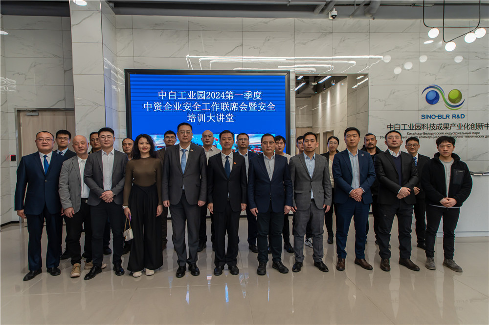 2024年4月4日,園區(qū)開發(fā)公司與中白警務(wù)合作中心(以下簡稱“中心”)共同舉辦2024年第一季度中資企業(yè)安全工作聯(lián)席會暨安全培訓(xùn)大講堂,中心中方工作組組長李光輝、園區(qū)開發(fā)公司副總經(jīng)理任飛及二十余家中資企業(yè)負(fù)責(zé)人、代表參加了本次會議,會議由中心中方工作組副組長薄士德主持。