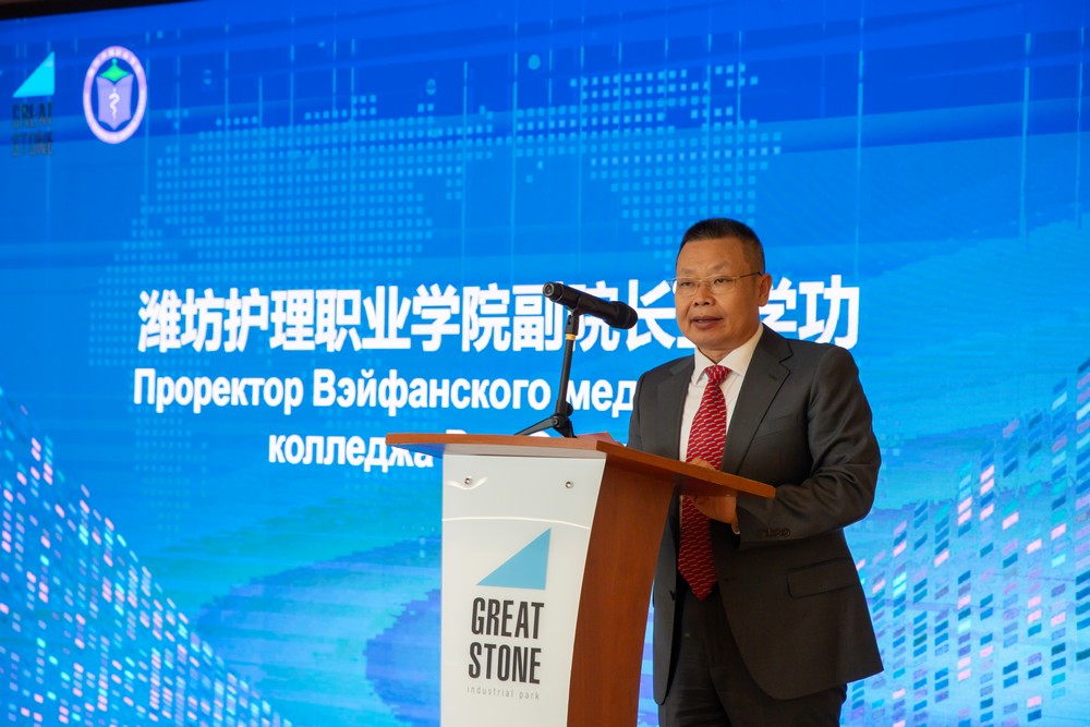中白工業(yè)園管委會副主任塔巴紐霍夫、中國教育部職業(yè)教育發(fā)展中心主任林宇、白俄羅斯教育部職業(yè)教育研究院院長戈盧博夫斯基、園區(qū)開發(fā)公司副總經(jīng)理杰特卡夫、園區(qū)“衛(wèi)生鑒定與試驗中心”副總經(jīng)理茲洛特妮科娃、濰坊護理職業(yè)學(xué)院副院長王學(xué)功及代表團成員、園區(qū)企業(yè)代表出席活動。儀式由濰坊護理職業(yè)學(xué)院健康管理學(xué)院院長徐歆主持。