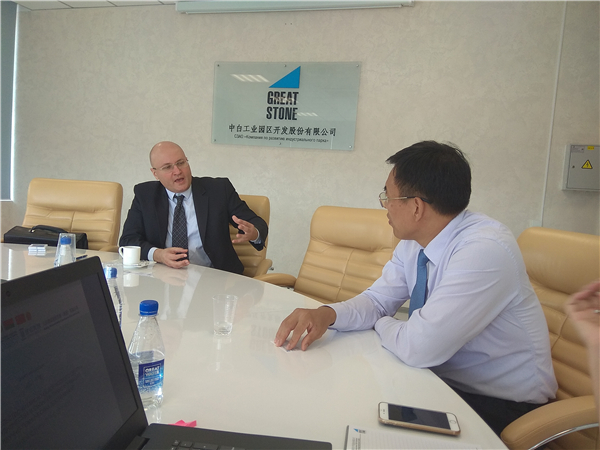 2018年6月29日上午,中白工業(yè)園區(qū)開發(fā)公司副總經(jīng)理任飛在園區(qū)會見中國國家開發(fā)銀行歐亞業(yè)務部副主任、白俄羅斯代表...201806-29