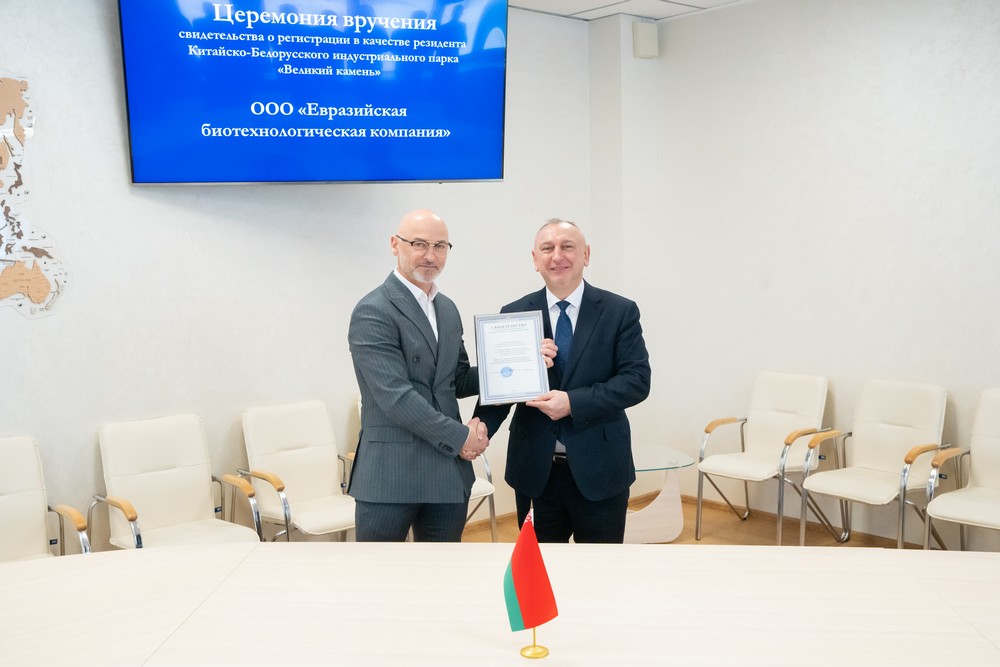 1月22日,歐亞生物技術(shù)有限責(zé)任公司入園儀式在園區(qū)舉行,園區(qū)管委會(huì)主任亞羅申科向歐亞生物技術(shù)有限責(zé)任公司總經(jīng)理別斯托爾科夫頒發(fā)了入園證書。開發(fā)公司總經(jīng)理李鐘...202401-22