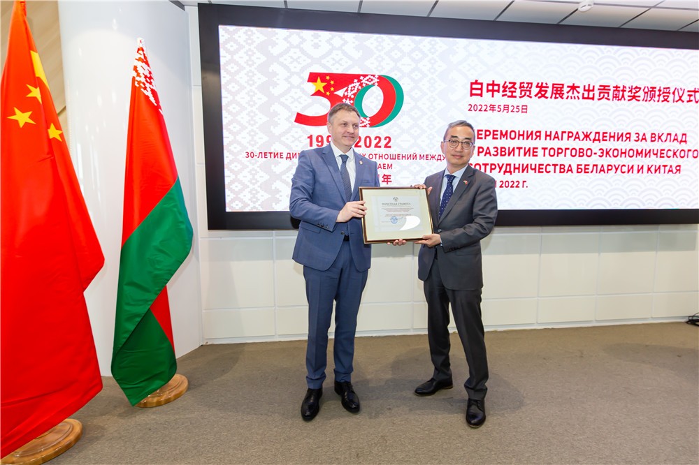 為慶祝中白兩國建交30周年,表彰為白中經(jīng)貿(mào)發(fā)展做出杰出貢獻(xiàn)的企業(yè),5月25日,由白俄羅斯經(jīng)濟(jì)部主辦的白中經(jīng)貿(mào)發(fā)展杰出貢獻(xiàn)獎(jiǎng)?lì)C授儀式在中白工業(yè)園舉行,園區(qū)開發(fā)公司...202205-25