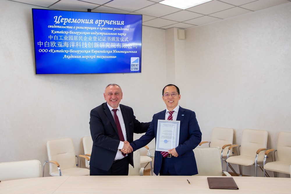 2021年7月21日,中白歐亞海洋科技創(chuàng)新研究院有限公司(以下簡稱“中白歐亞海洋研究院”)成為中白工業(yè)園第72家入園居民企業(yè),園區(qū)管委會主任雅羅申科向項目總經(jīng)理史正平...202107-21