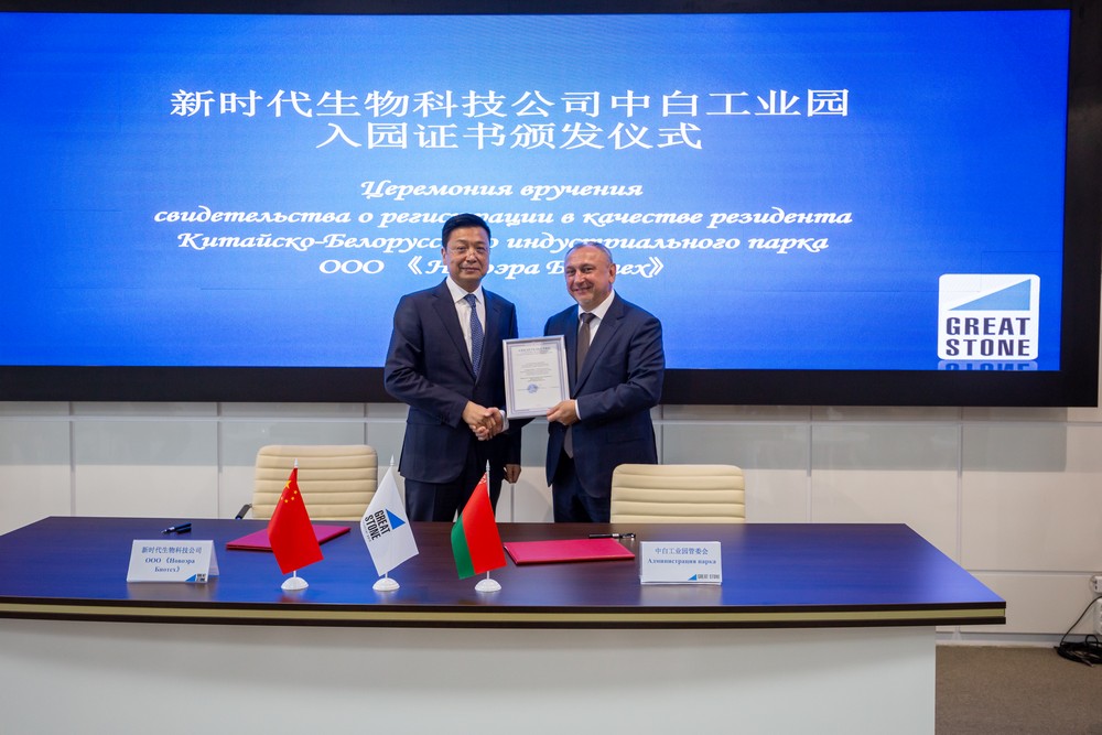 3月18日上午,中白工業(yè)園舉行了新時代生物科技有限公司(以下簡稱“新時代生物公司”)入園儀式,中國駐白俄羅斯大使謝小用、商務參贊趙秋艷、白俄羅斯經(jīng)濟部副部長安澤麗...202103-18