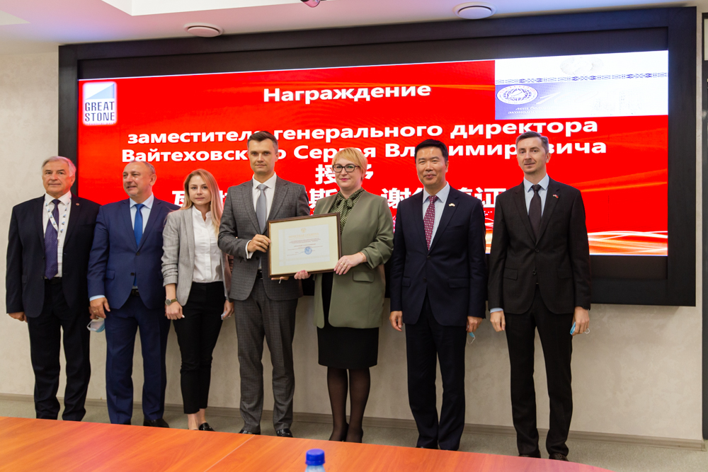 9月2日,園區(qū)開發(fā)公司副總經(jīng)理維杰霍夫斯基獲頒白俄羅斯經(jīng)濟(jì)部“杰出貢獻(xiàn)獎(jiǎng)”,該獎(jiǎng)狀由經(jīng)濟(jì)部副部長(zhǎng)尼京金娜·安熱拉頒發(fā),園區(qū)管委會(huì)主任亞羅申科,開發(fā)公司總經(jīng)理嚴(yán)剛...202109-02